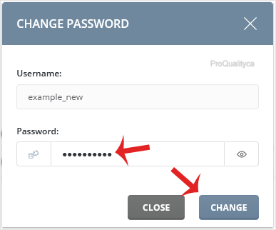 5. Enter your password or click on the generate password icon and then on the Change button.