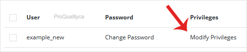4. Under the User list, you can find your database users. Click on Modify Privileges.