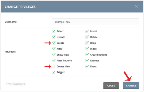 5. Modify Privileges according to your needs and then click the Change button.